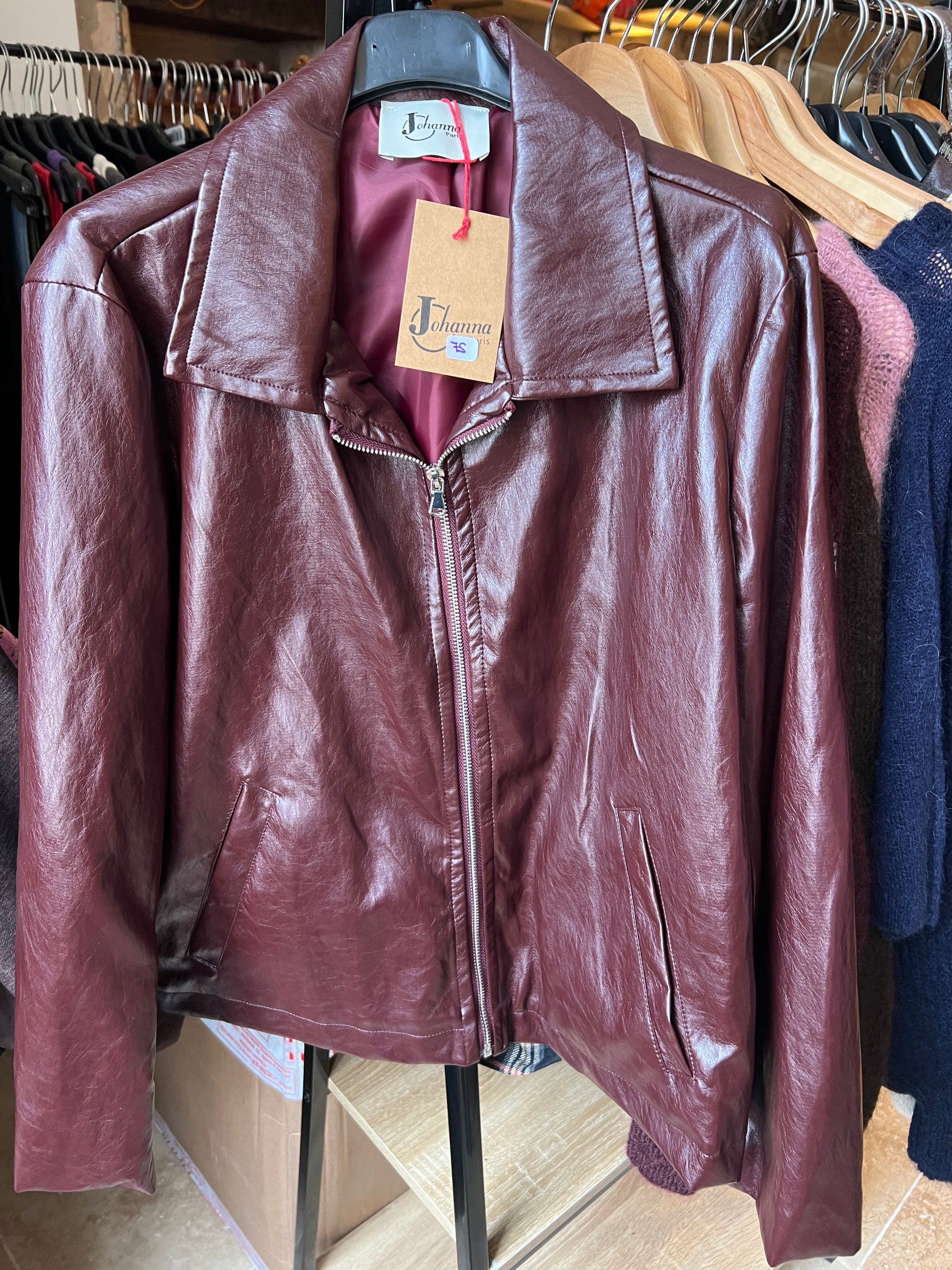 Blouson droit en simili cuir bordeaux-Johanna paris